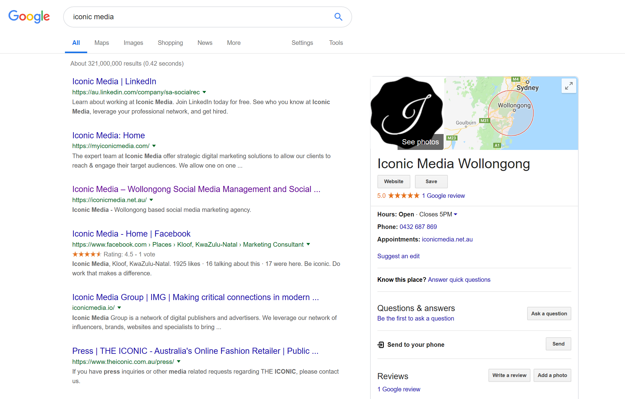 This shows people where you’re located, your trading hours, how to contact you and they can also see any posts or reviews your business has. Having a listing and updating it regularly is an absolute necessity for any business as far as I’m concerned.